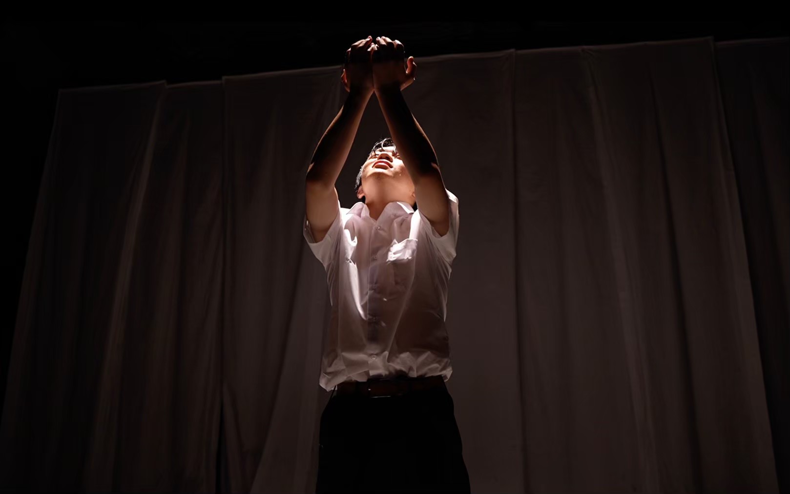 高校時代に演劇と出会い、放課後の限られた時間のなかで、観客に楽しんでもらうことを第一に考えながら、仲間と共に脚本づくりや演技に取り組んでいった。役者として出演するだけでなく、大道具の制作や脚本執筆にも携わることで、舞台全体を構成する視点が自然と養われていった。